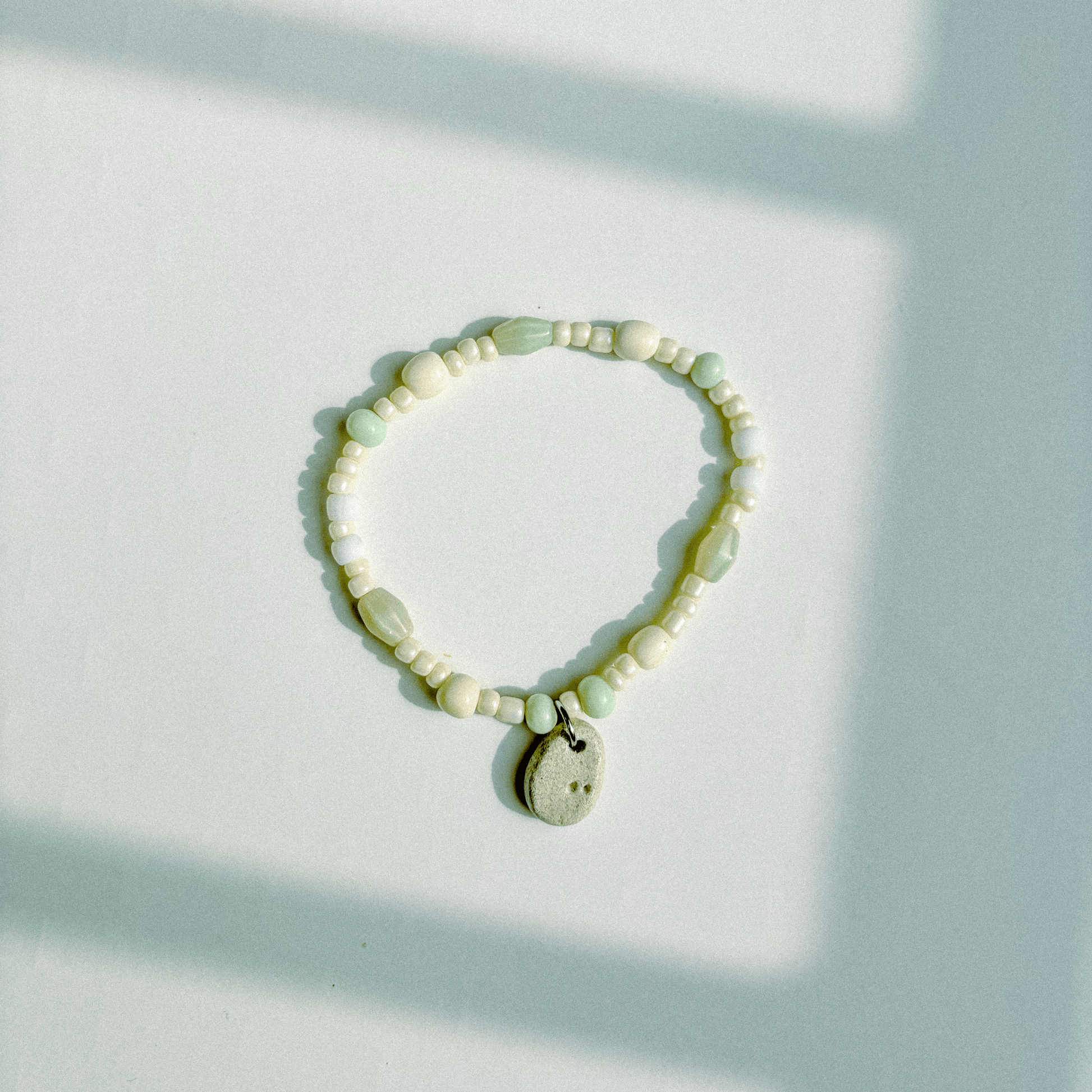 石ころのようにころころとした、vanillawave.オリジナルのチャームをつけたブレスレットです。